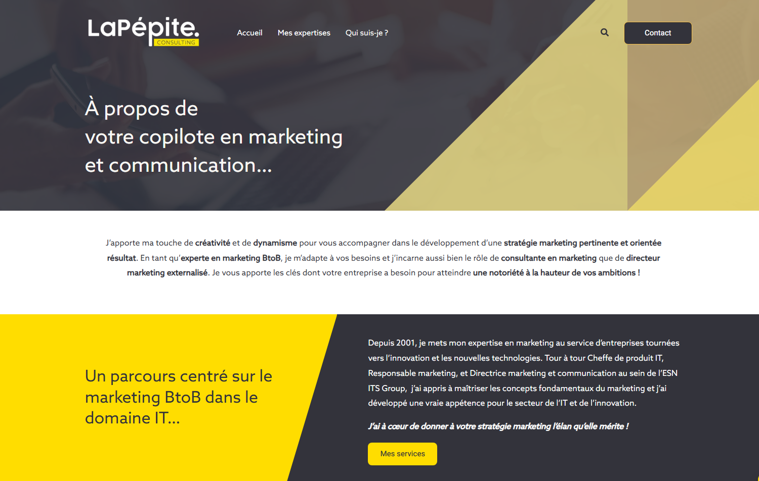 Créer une vitrine professionnelle fidèle à l’univers de marque pour renforcer la crédibilité d’une consultante en marketing B2B.