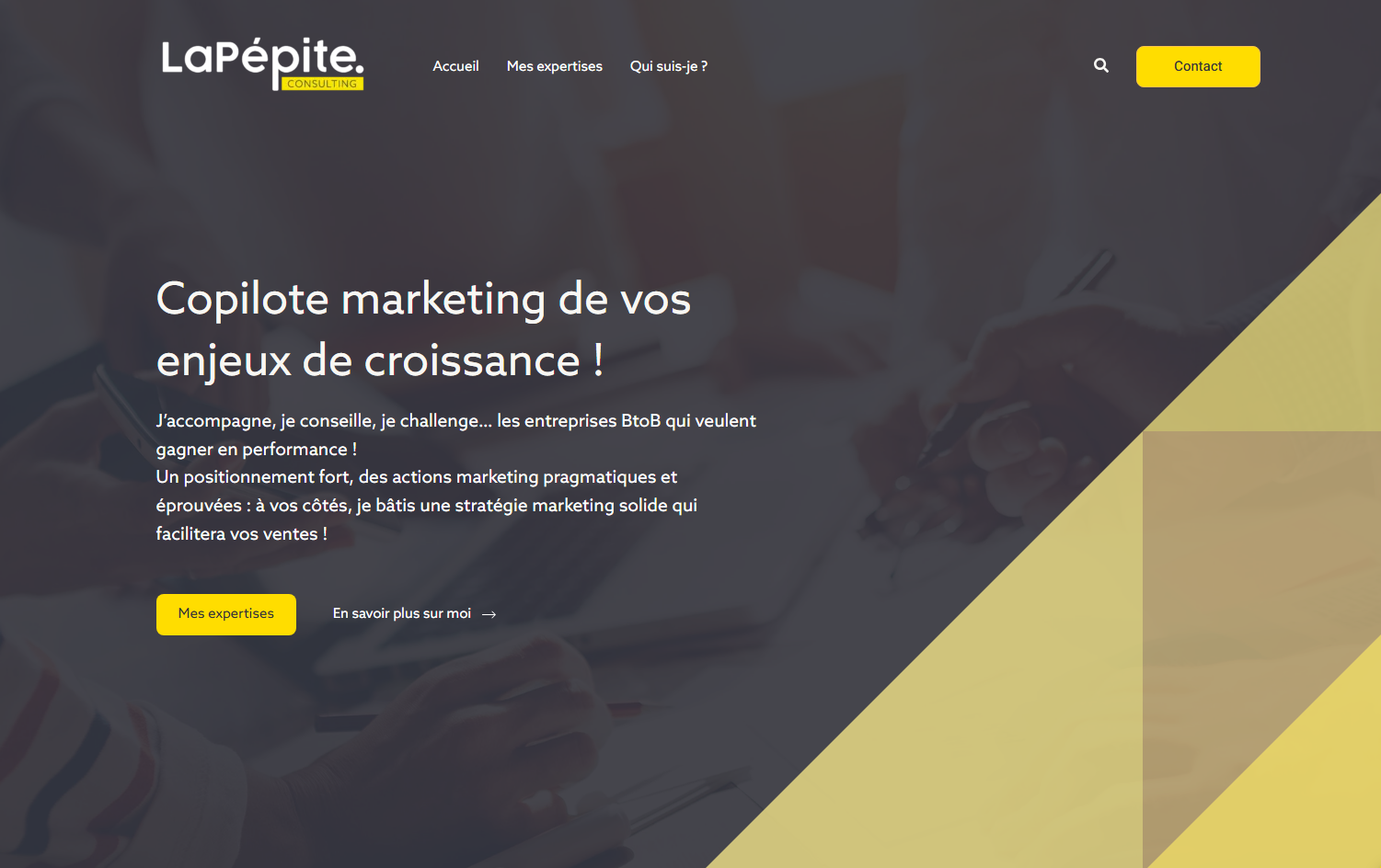 La Pépite Consulting accompagne des entreprises B2B sur leurs enjeux marketing. Pour soutenir cette activité, sa fondatrice avait besoin d’un site vitrine simple mais percutant, capable de refléter son expertise tout en inspirant confiance. L’objectif principal : renforcer sa crédibilité en ligne et disposer d’un espace professionnel pour présenter ses services et ses réalisations.